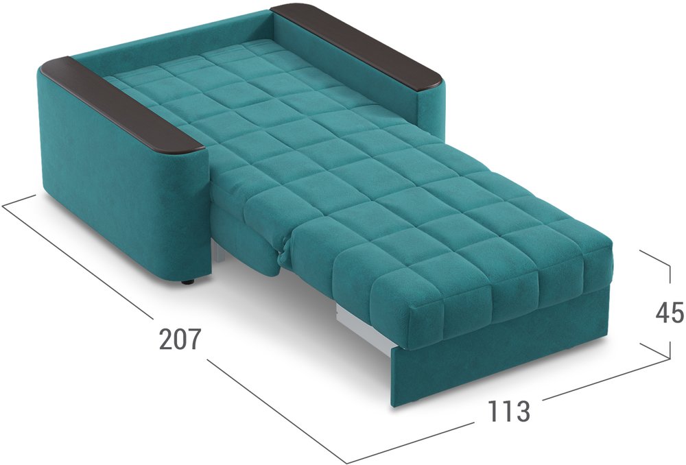 Объемные подлокотники — стильная деталь, отлично вписывающая кресло-кровать в интерьер современной городской квартиры.