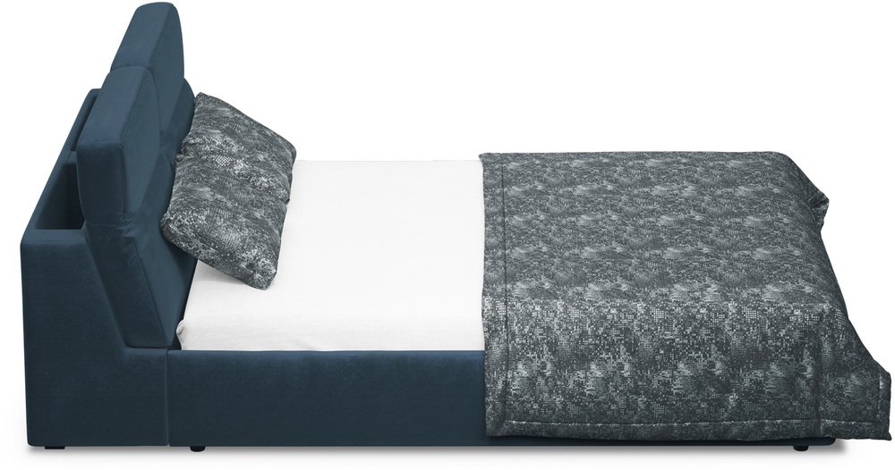 Достоинства: функциональное изголовье, большой короб для белья