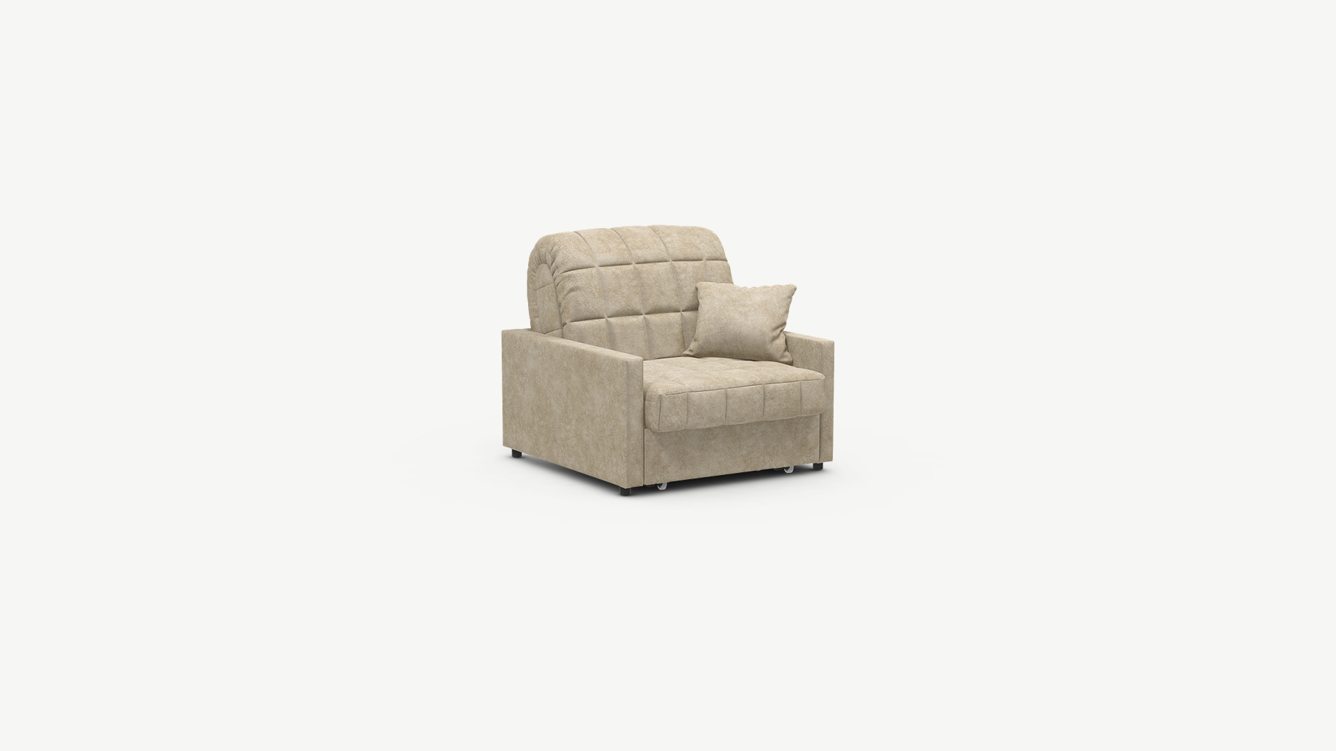 Кресло-кровать MOON FAMILY 134 украшено уютной стежкой в квадрат. Гладкая фактура подлокотников и стежка — эффектный визуальный контраст, добавляющий дизайну привлекательности.