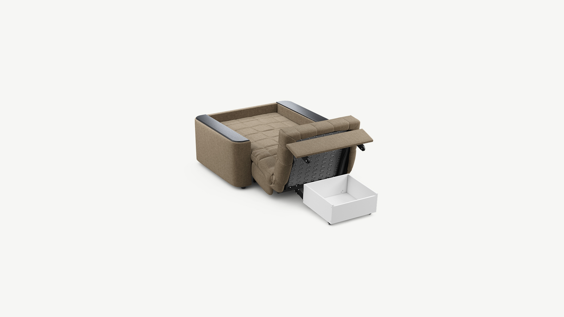 В качестве дополнительной опции к креслу-кровати предлагается бельевой короб, который устанавливается под механизм трансформации.