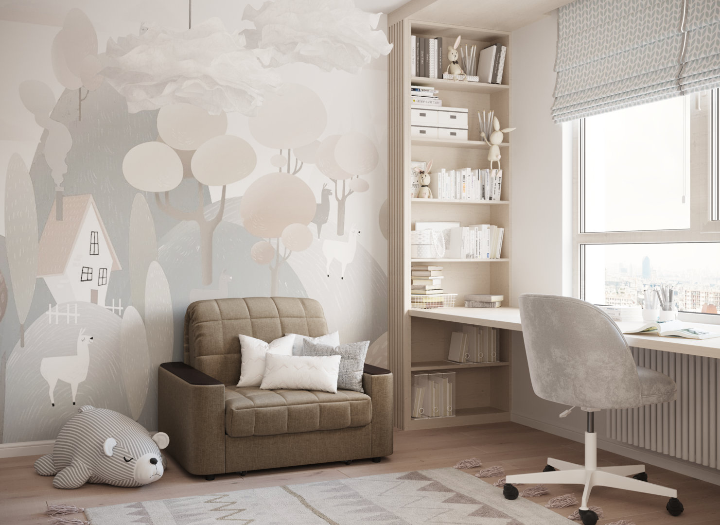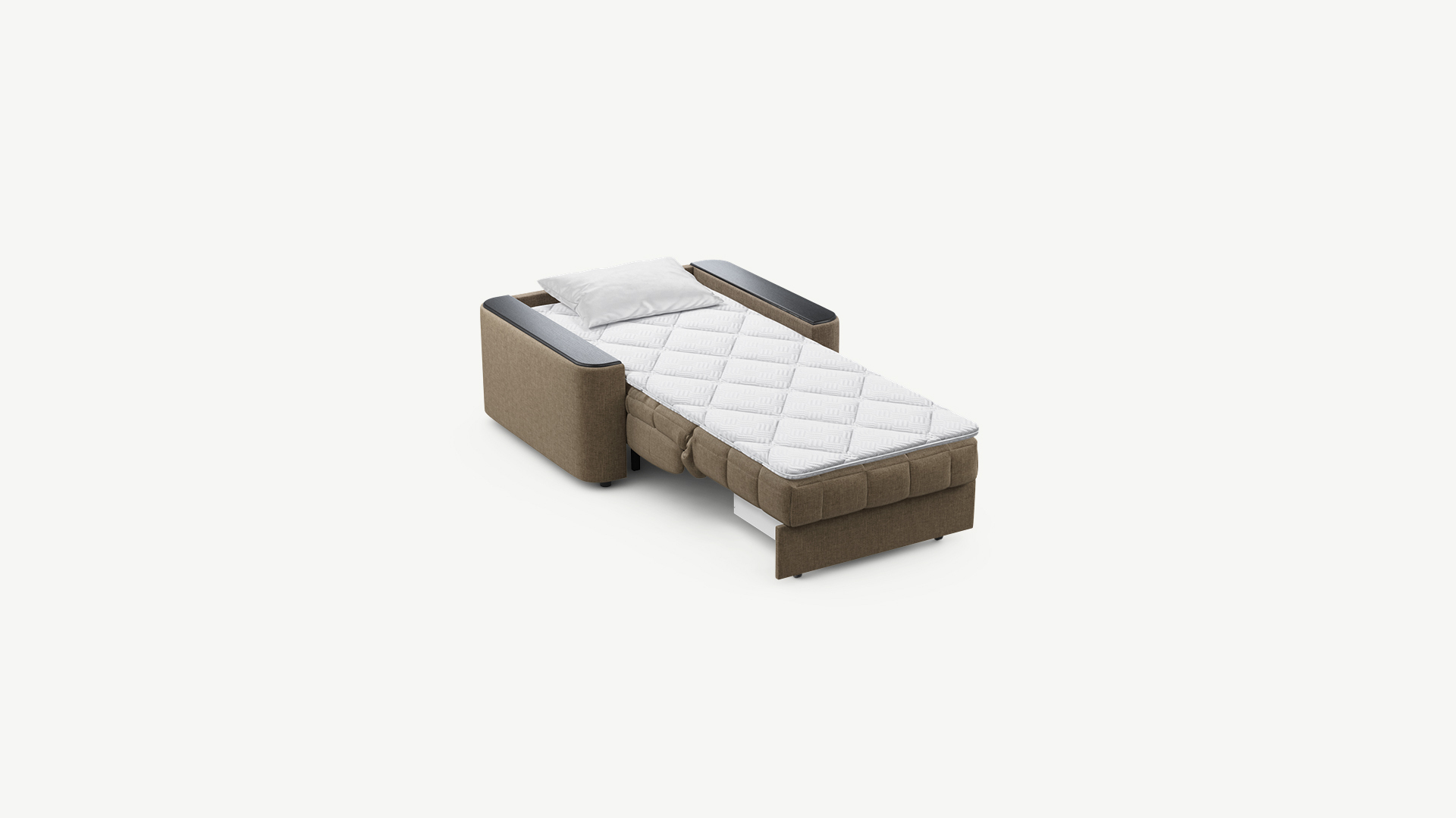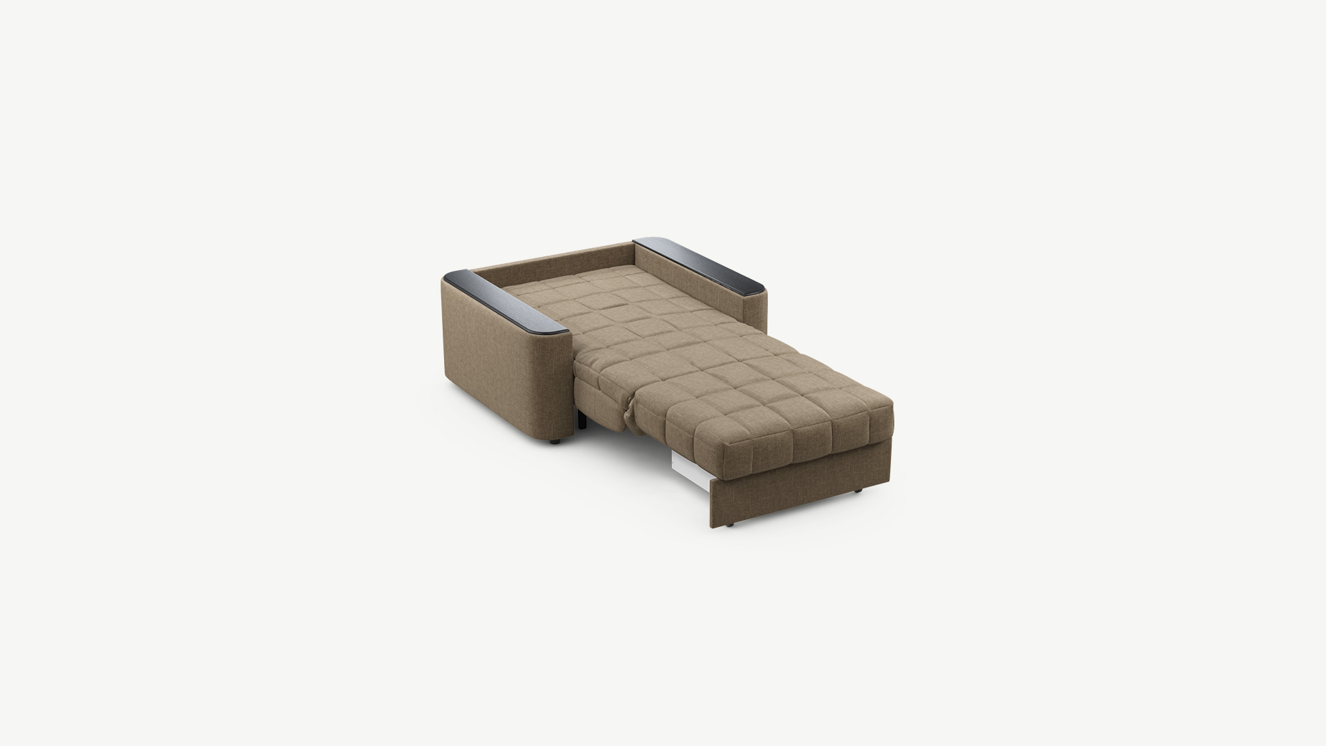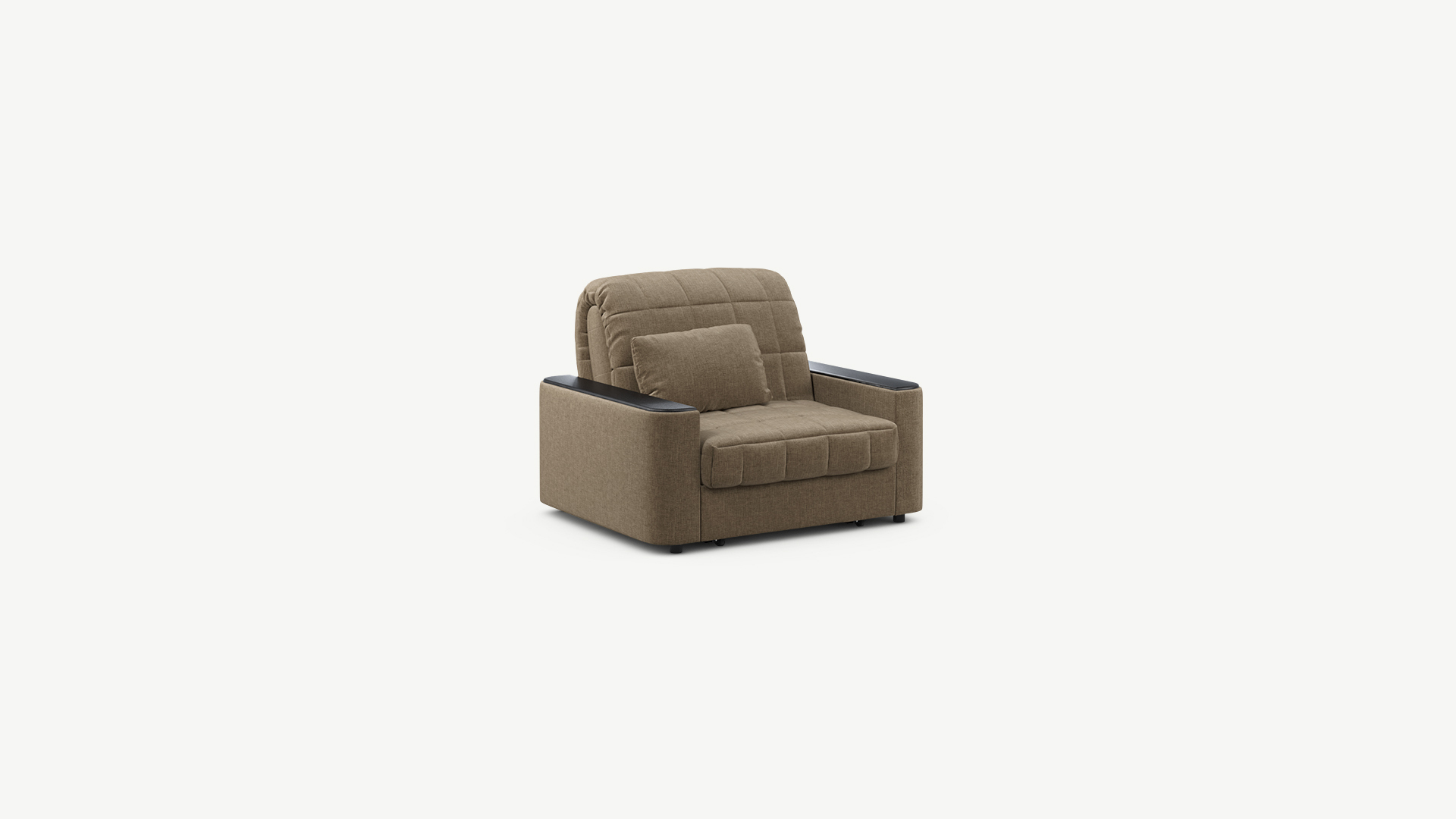 Объемные подлокотники — стильная деталь, отлично вписывающая кресло-кровать в интерьер современной городской квартиры.