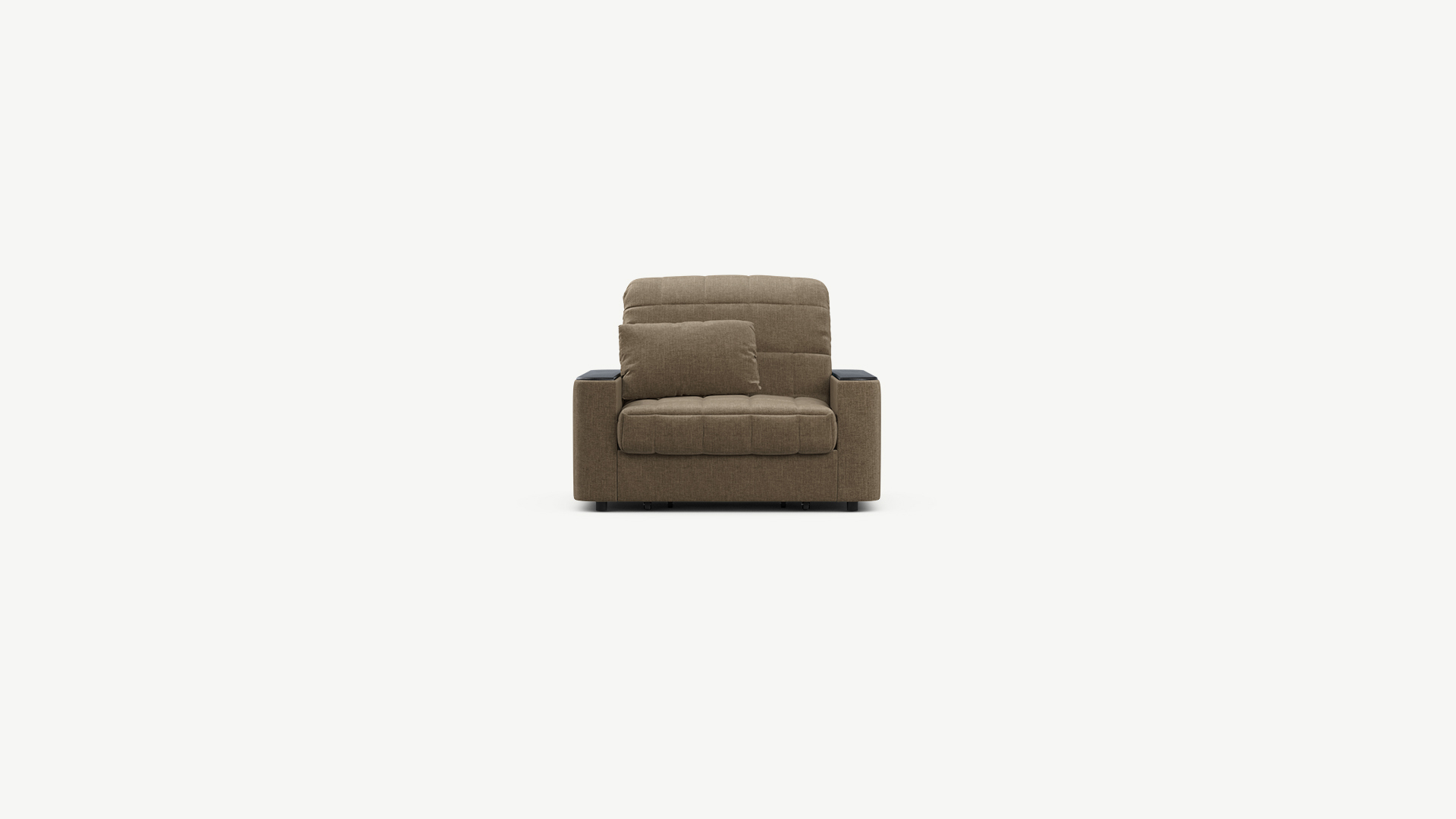 Кресло-кровать MOON FAMILY 018 украшено стежкой в квадрат. Проверенный временем дизайн производит впечатление уютного и надежного пространства. На объемные прямоугольные подлокотники с широкой столешницей удобно положить книгу и пульт, телефон или планшет, а также поставить чашечку чая.