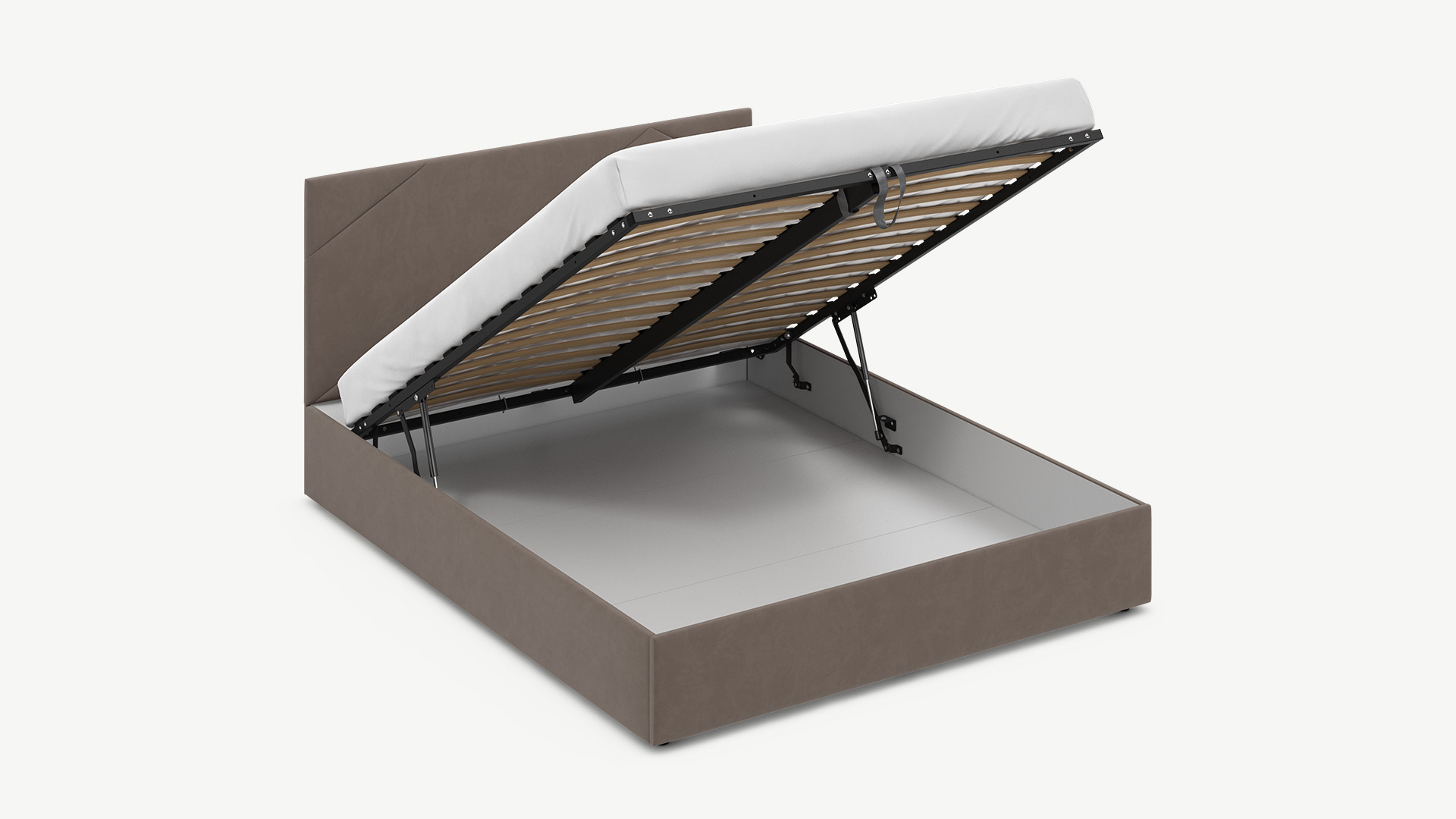 - Скрытая под основанием вместительная емкость без внутренних перегородок позволяет использовать всю площадь подкроватного пространства для хранения вещей.