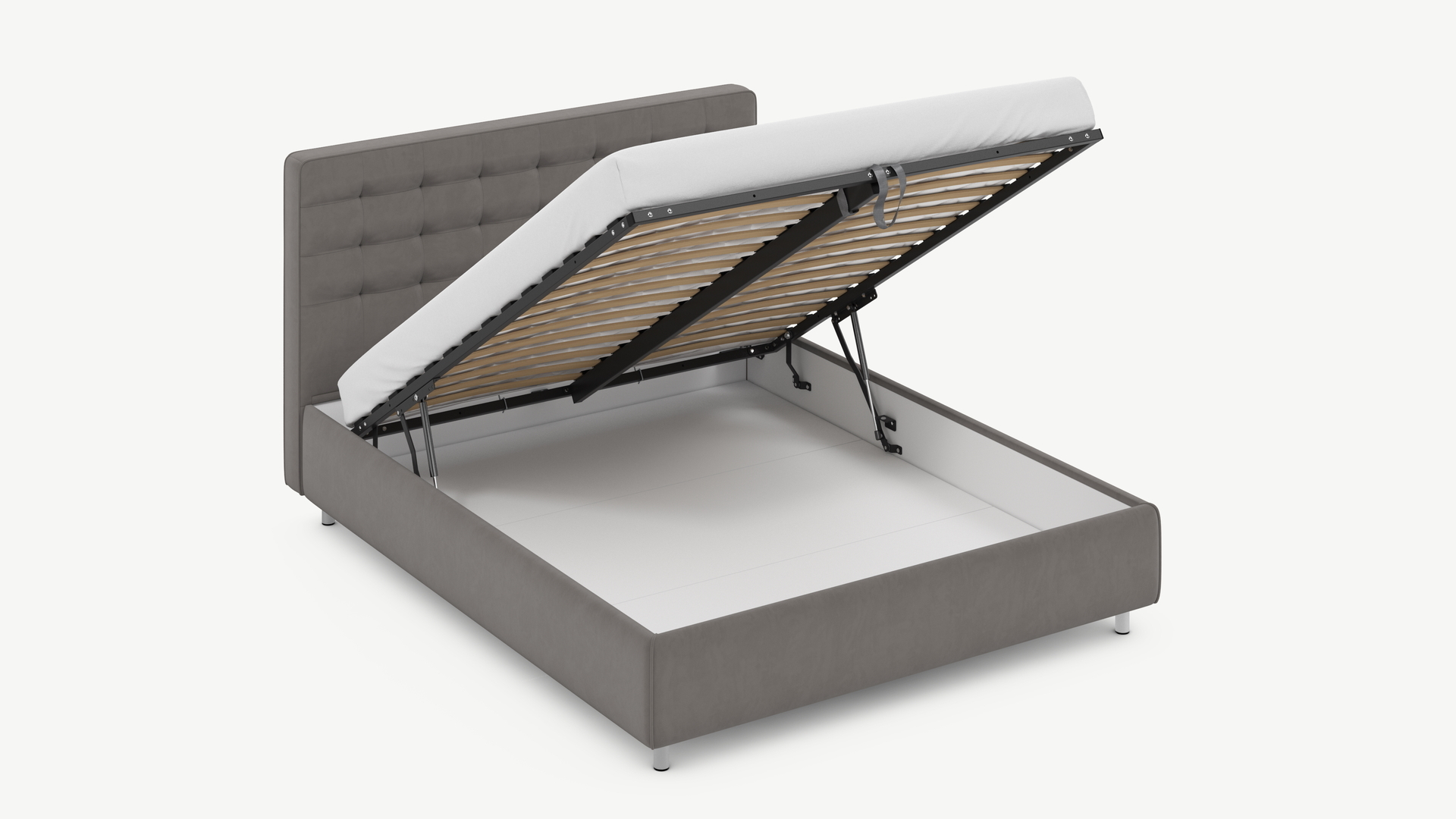 - Скрытая под основанием вместительная емкость без внутренних перегородок позволяет использовать всю площадь подкроватного пространства для хранения вещей.