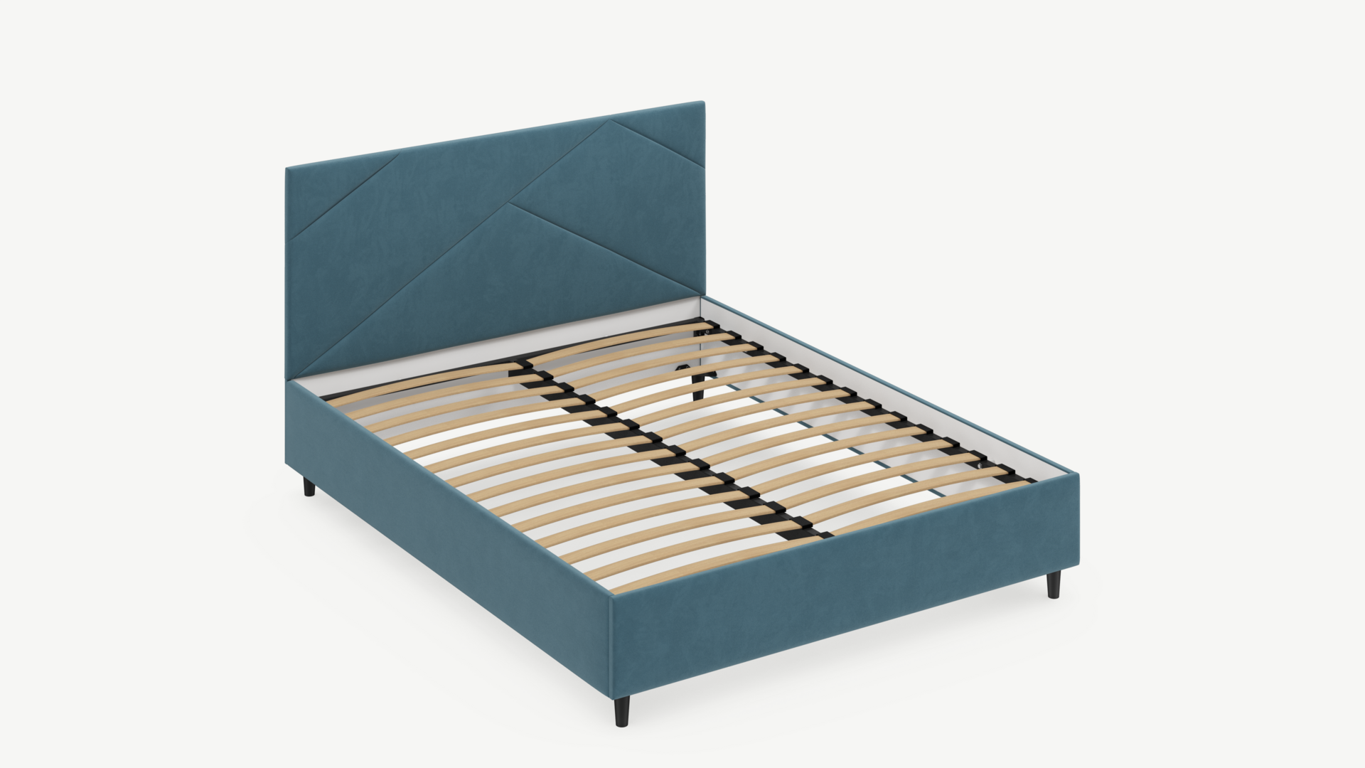 MOON FAMILY 1257 привлекает внимание оригинальным исполнением: широкие полосы ткани эффектно пересекают периметр изголовья, создавая на нем графический орнамент. Лаконичные формы объемных царг создают единый гармоничный образ и фокусируют внимание на центральном текстурном элементе кровати.
