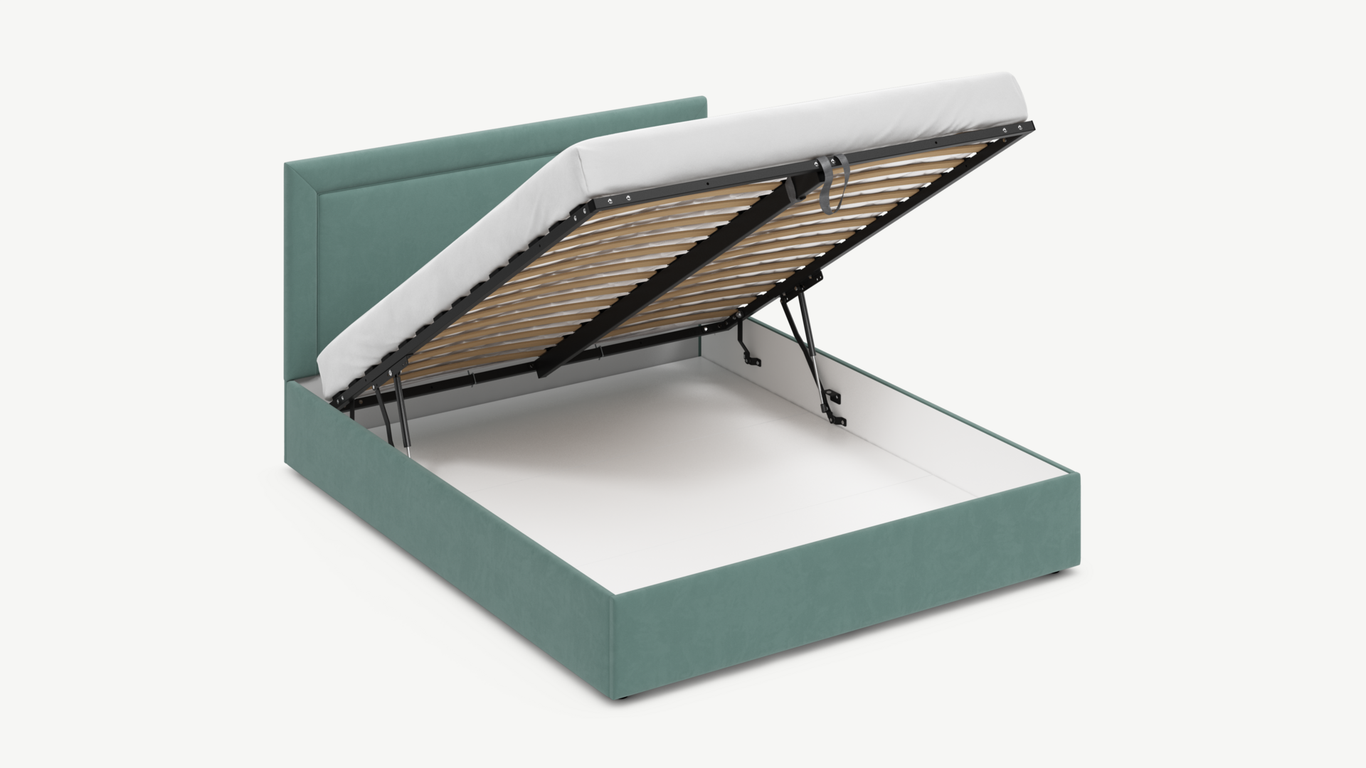 • Скрытая под основанием вместительная емкость без внутренних перегородок позволяет использовать всю площадь подкроватного пространства для хранения вещей.