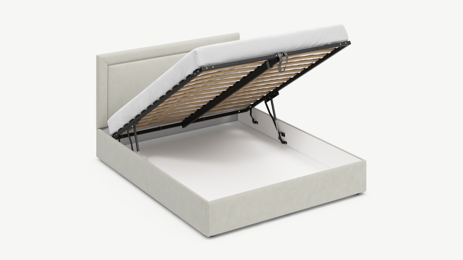 • Скрытая под основанием вместительная емкость без внутренних перегородок позволяет использовать всю площадь подкроватного пространства для хранения вещей.