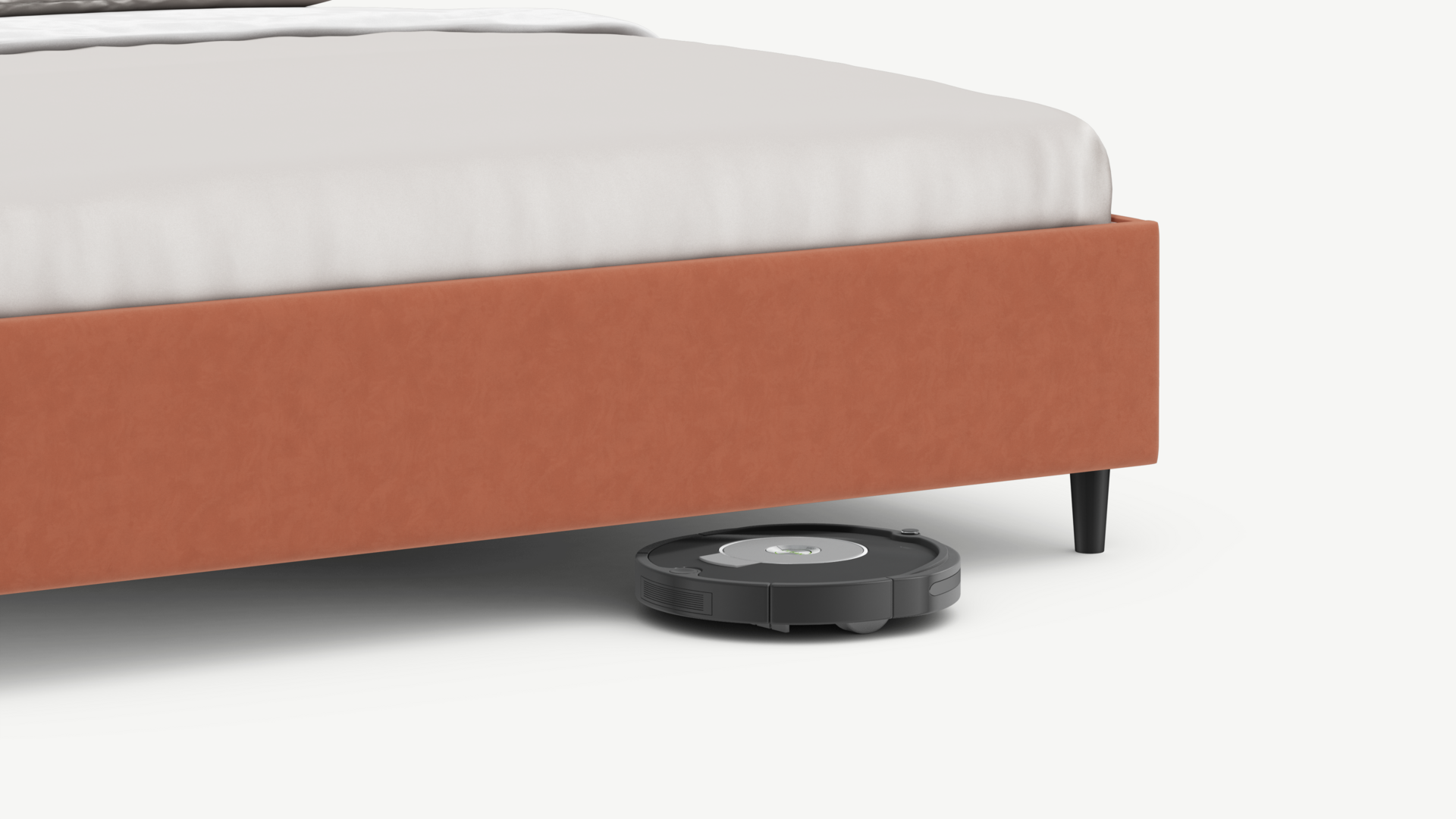 Благодаря высоким опорам под кроватью проходит робот-пылесос и легко проводится влажная уборка, что обеспечивает чистоту и порядок в доме.