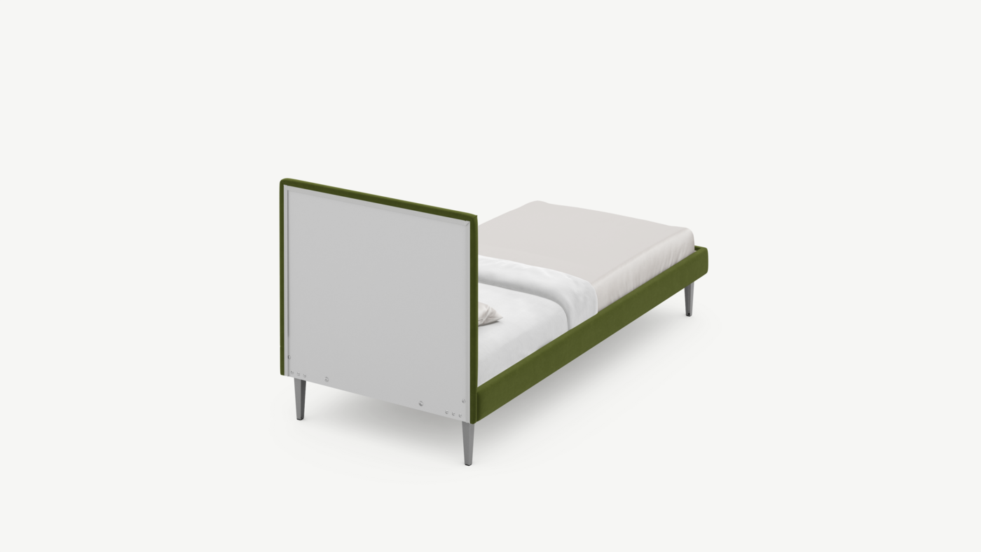 Кровать MOON FAMILY 1256 демонстрирует безупречный баланс изящных пропорций. Лаконичное изголовье, узкие царги и высокие опоры создают эффектный образ, привносящий в пространство спальни стильный и яркий акцент.