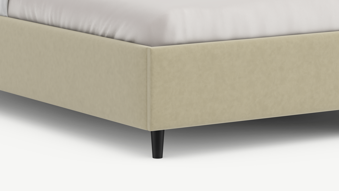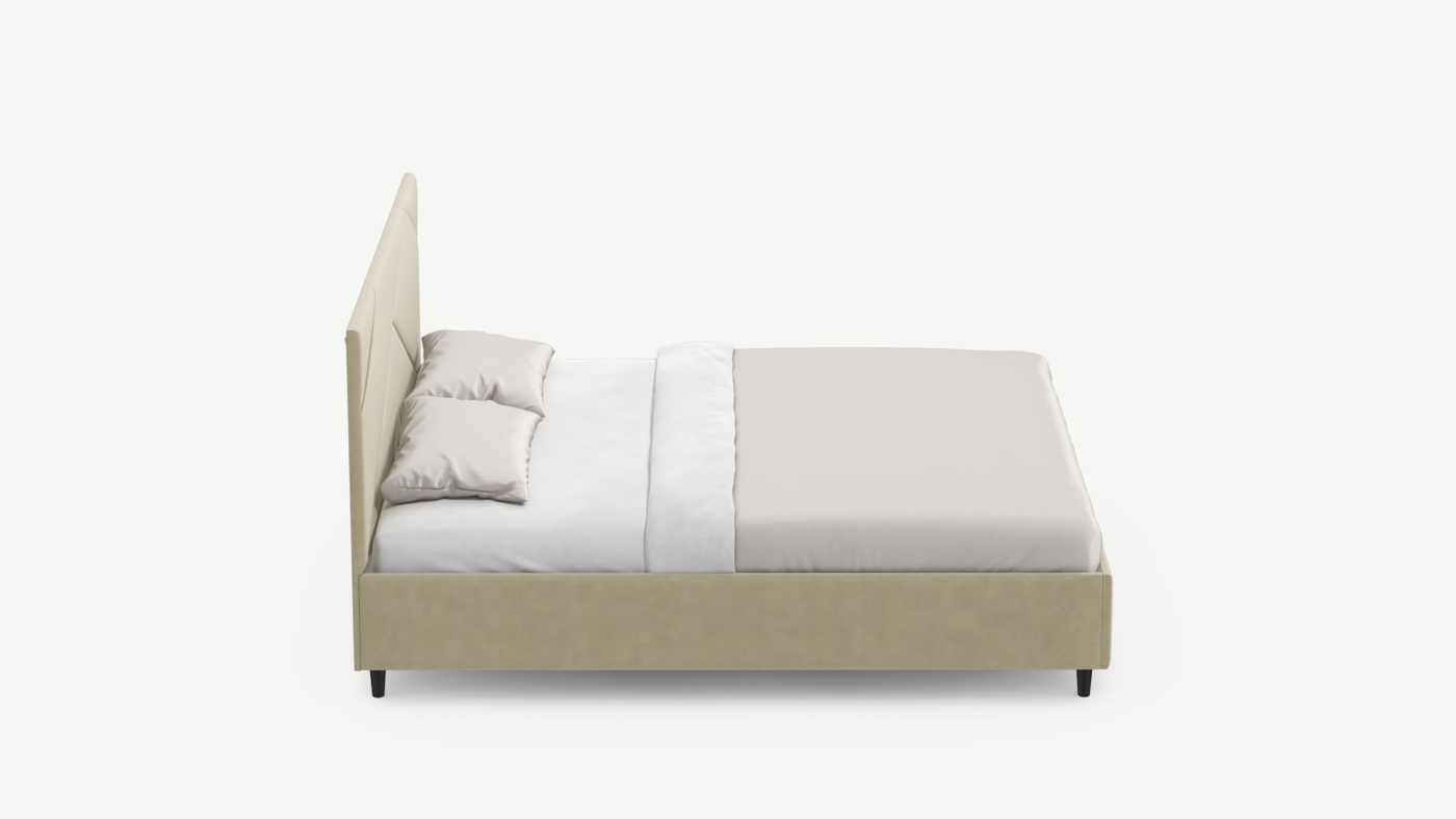MOON FAMILY 1257 привлекает внимание оригинальным исполнением: широкие полосы ткани эффектно пересекают периметр изголовья, создавая на нем графический орнамент. Лаконичные формы объемных царг создают единый гармоничный образ и фокусируют внимание на центральном текстурном элементе кровати.