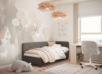 В подростковой комнате эта кровать станет стильным акцентом окружающего интерьера и возьмет на себя роль удобной кушетки для друзей, зашедших в гости.