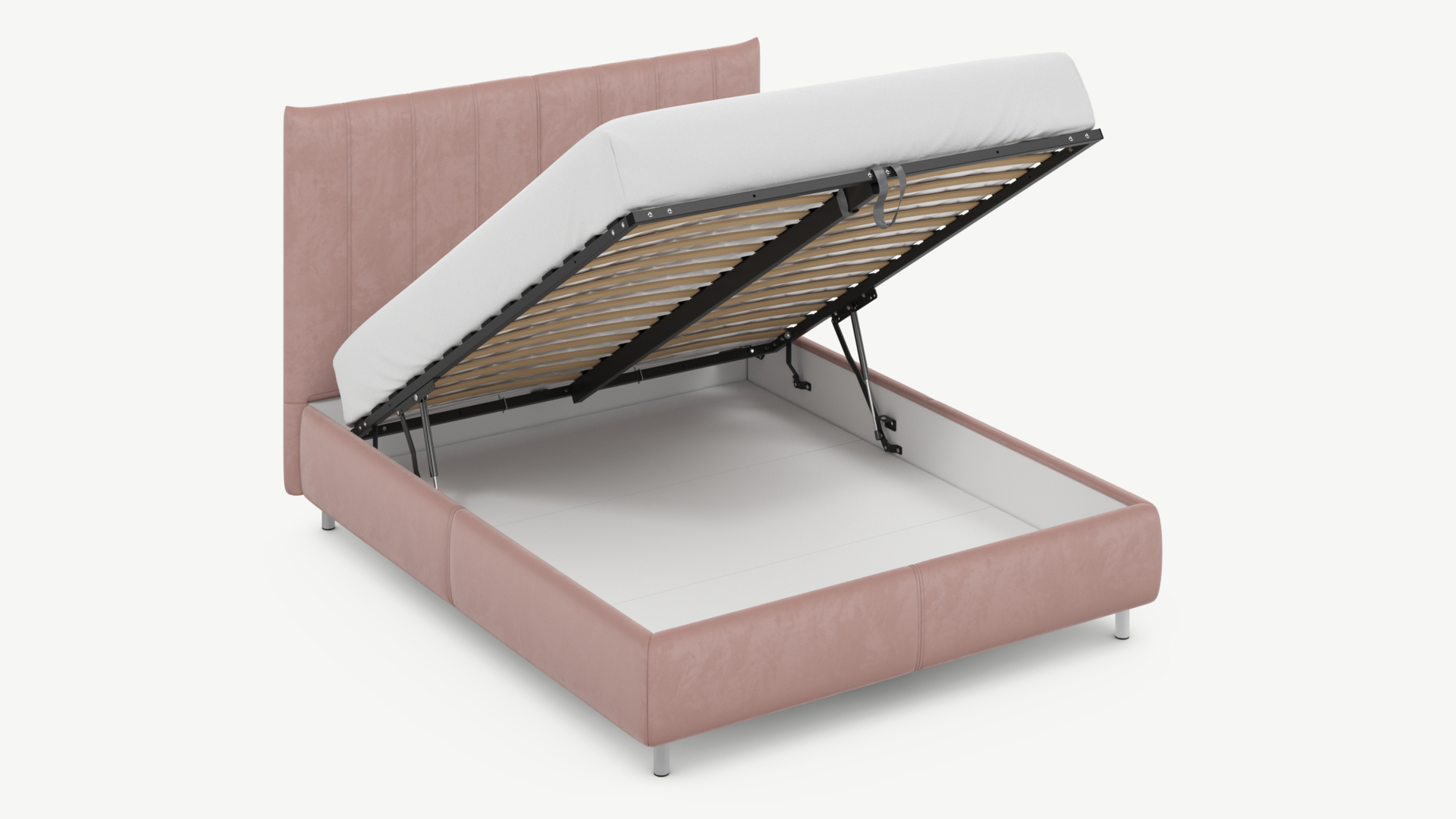 • Скрытая под основанием вместительная емкость без внутренних перегородок позволяет использовать всю площадь подкроватного пространства для хранения вещей.