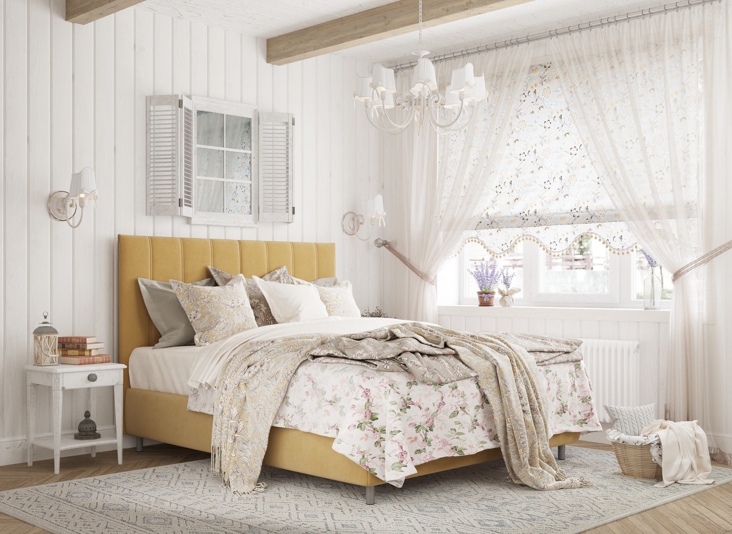 Матрас, декоративные подушки и саше