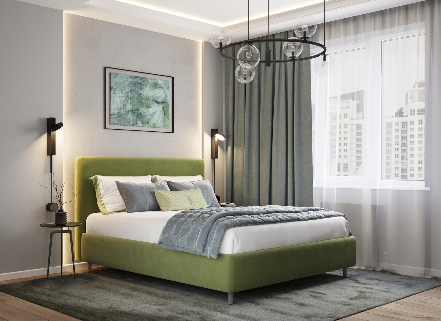 Творческий подход к выбору обивочного материала меняет образ дизайна. Велюр за счет своей бархатистой фактуры привносит в пространство шика и утонченности. Шенилл дополняет оформление спальни природными текстурами, создавая атмосферу тепла и уюта.