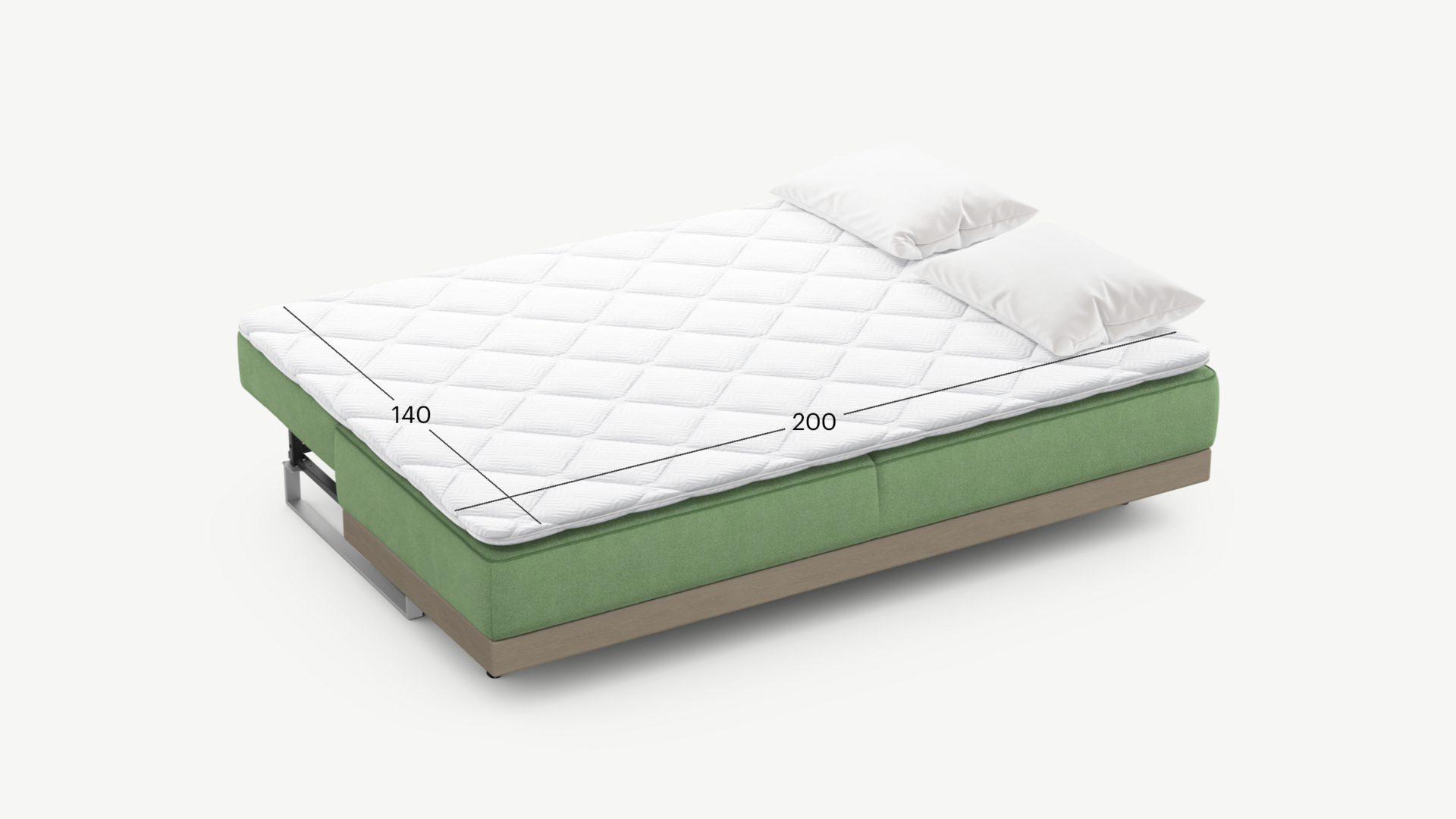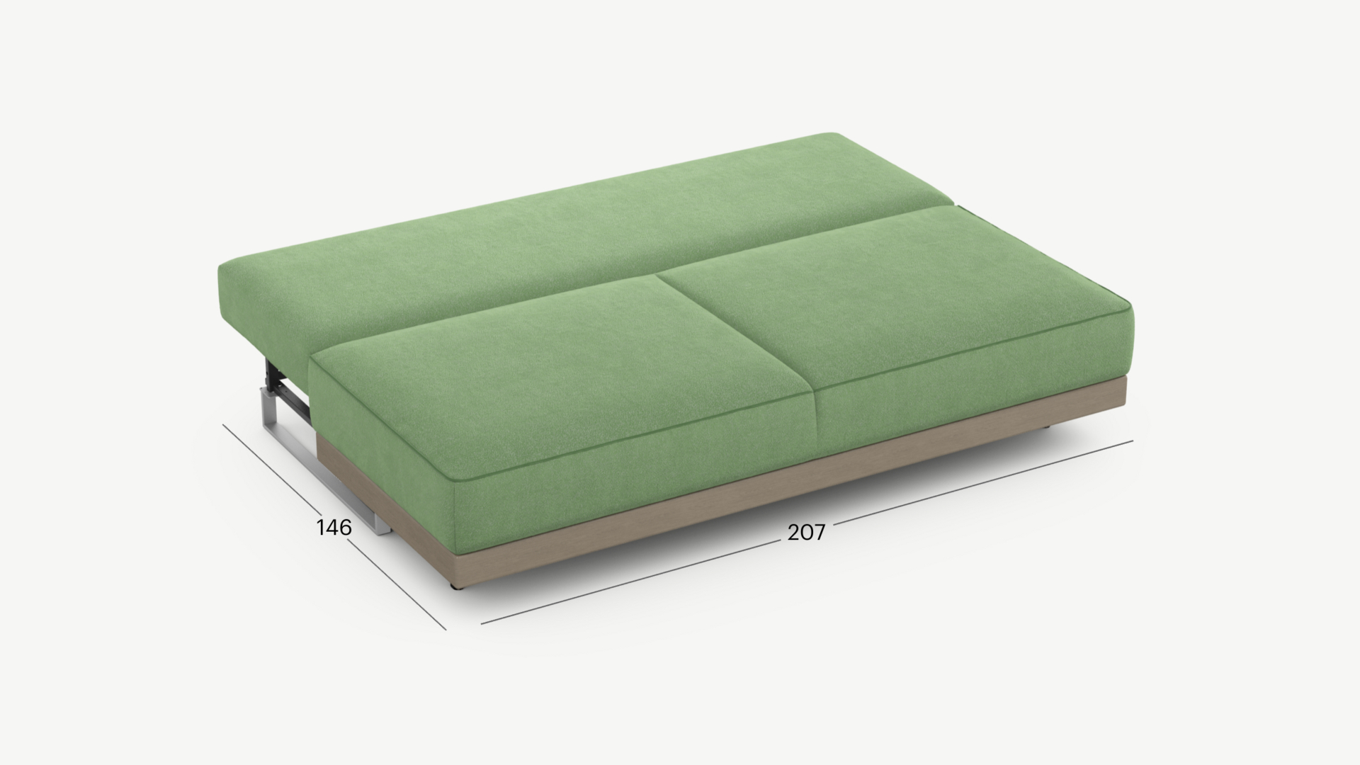 Механизм трансформации «Пантограф» подходит для ежедневного использования. Позволяет легко раскладывать и складывать диван, обеспечивая минимальный контакт дополнительных опор с напольным покрытием. Диван стоит на прямоугольных опорах, в то время как дополнительные остаются скрытыми, появляясь плавно и бесшумно в единственно нужный момент — при трансформации дивана в кровать.