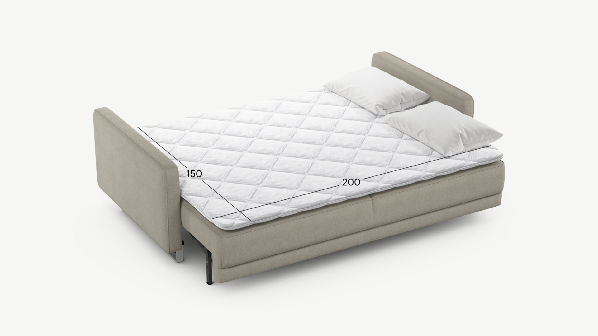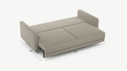 Механизм трансформации «Пантограф» подходит для ежедневного использования. Позволяет легко раскладывать и складывать диван, обеспечивая минимальный контакт дополнительных опор с напольным покрытием. Диван стоит на прямоугольных опорах, в то время как дополнительные остаются скрытыми, появляясь плавно и бесшумно в единственно нужный момент — при трансформации дивана в кровать.