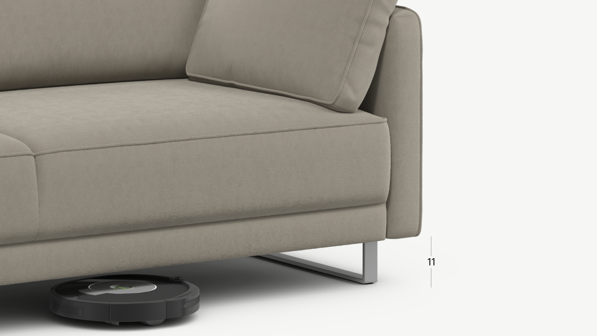 Благодаря высоким прямоугольным опорам под диваном проходит робот-пылесос и легко проводится влажная уборка, что обеспечивает чистоту и порядок в доме.