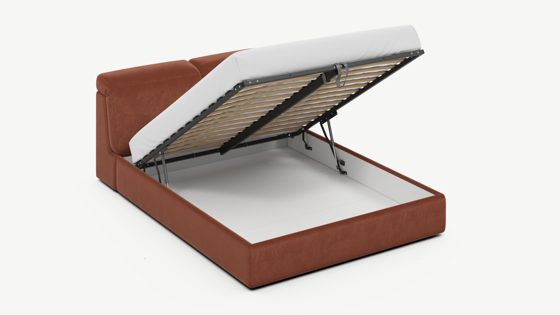 • Скрытая под основанием вместительная емкость без внутренних перегородок позволяет использовать всю площадь подкроватного пространства для хранения вещей.