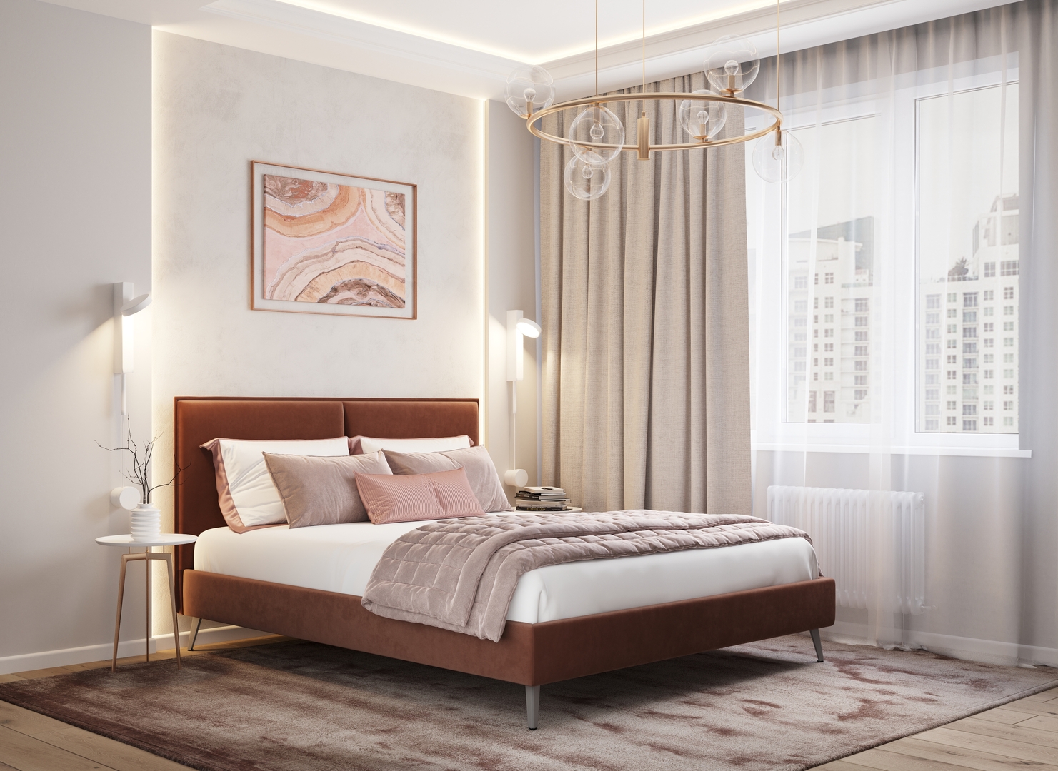Оформите образ кровати, выбирая обивочный материал, который подчеркнет стиль Вашей спальни и отразит Ваш вкус. Использование светлых цветов поддержит настроение стиля «Сканди». Нейтральные оттенки в цвет интерьера обыграют спальню в Современном стиле.