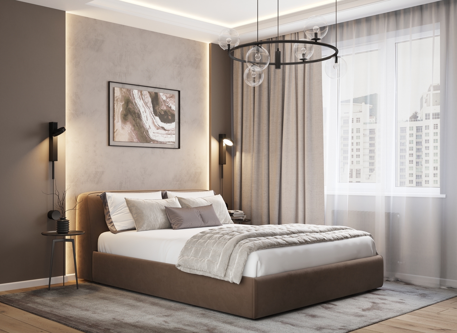 Подчеркнуть образ MOON 1008 и добавить пространству утонченности позволит однотонный велюр.