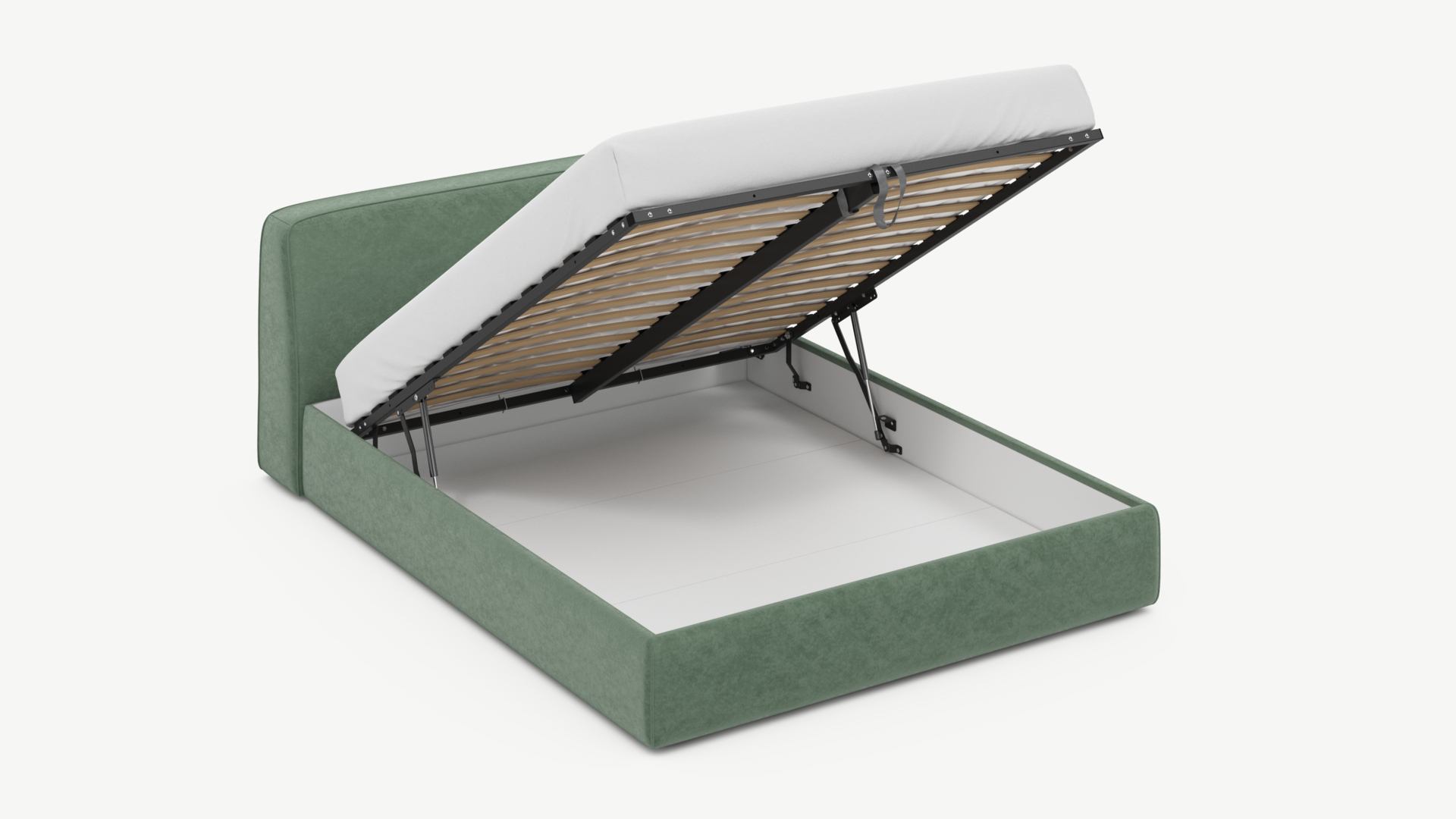 • Скрытая под основанием вместительная емкость без внутренних перегородок позволяет использовать всю площадь подкроватного пространства для хранения вещей.