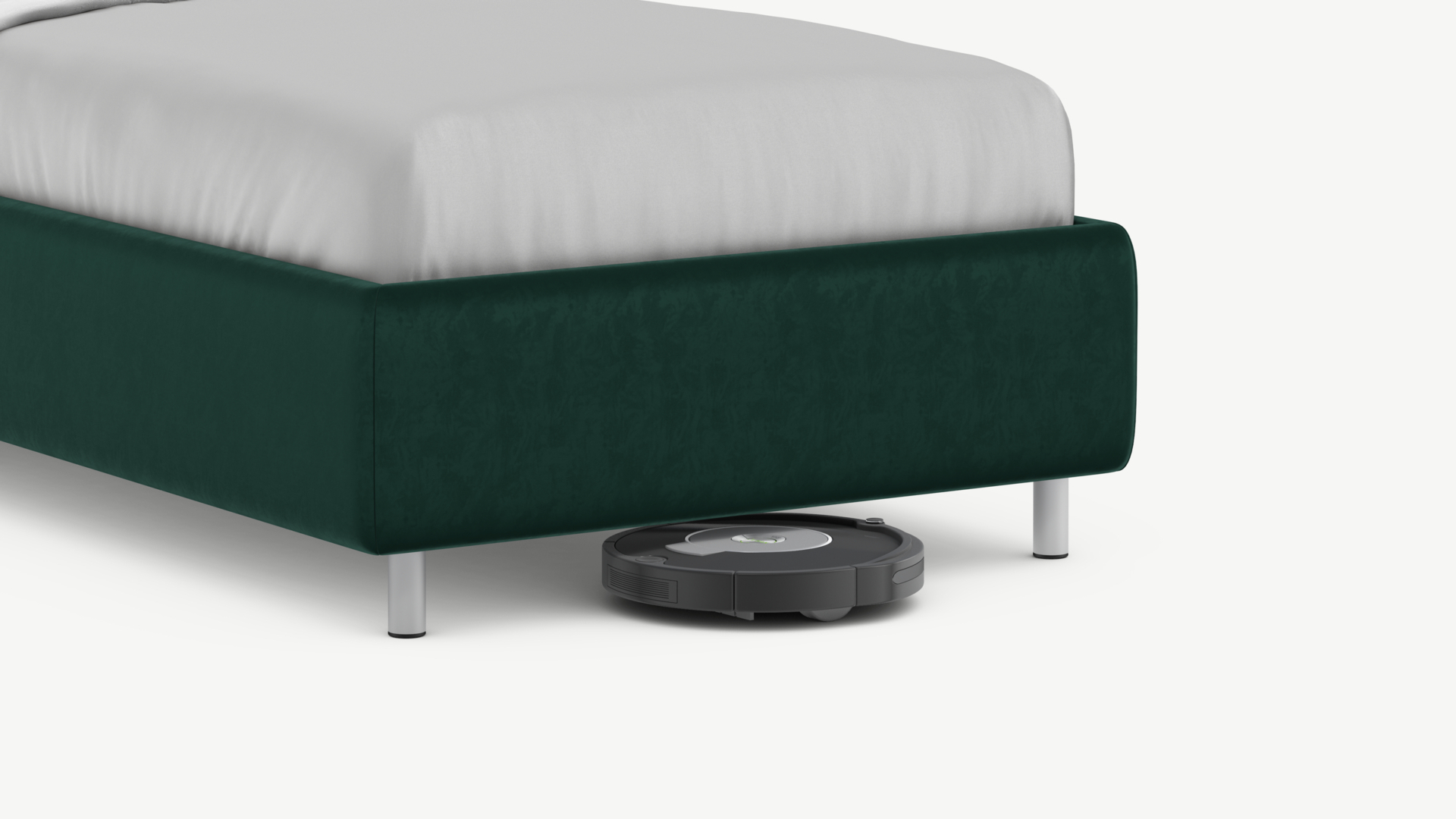 Металлические опоры создают над полом достаточный просвет для движения робота-пылесоса, что помогает поддерживать чистоту и порядок в доме.